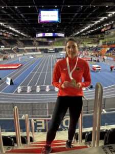 Von 26.03.bis 02.04. fand in Torun, Polen, die 15. Hallen-EM der Masters statt. Sehr erfolgreich war auch Martina Meissner vom TV Bargau mit von der Partie. Der erste Wettkampftag startete gleich mit einem Paukenschlag. Völlig überraschend sicherte sich Martina, auch dank wertvoller Tipps ihres Vereinskollegen Tobi Oberst, mit 1,45 m in persönlicher Bestleistung im ersten Versuch die Goldmedaille im Hochsprung. Eine Riesenüberraschung und ein optimaler Start in die Wettkämpfe. Am 01.04. dann die Königsdisziplin der Leichtathletik, der Fünfkampf. Mit zwei persönlichen Bestmarken, 9,30 Sek. bei den 60 m Hürden und 10,32 m im Kugelstoßen, dazu sehr solide Leistungen im Hochsprung, Weitsprung und den 800 m reichte es zu einem souveränen dritten Platz, der mit der Bronzemedaille belohnt wurde. Ein Ergebnis auf das Martina sehr stolz und überaus glücklich war. Der Mehrkampf ist der Wettkampf, der ihr am meisten Spaß bereitet. Umso größer dann die Freude, wenn er auch noch so erfolgreich absolviert wird. Zum Abschluss der Wettkämpfe standen dann noch die Staffeln auf dem Programm. Martina war hier für die 4 x 200 m nominiert. Das deutsche Nationalteam glänzte mit einem von Beginn an souveränen Lauf und sicherte sich mit klarem Abstand vor Frankreich und Spanien den Titel. Damit war das zweite Gold in der Tasche, die damit gut gefüllt, die Rückreise antreten konnte. Insgesamt ist Martina Meissner, kombiniert mit dem 2. Platz bei den 60 m Hürden bei den Deutschen Meisterschaften zwei Wochen vor der EM in Düsseldorf, ein toller Start in das Wettkampfjahr 2026 gelungen.